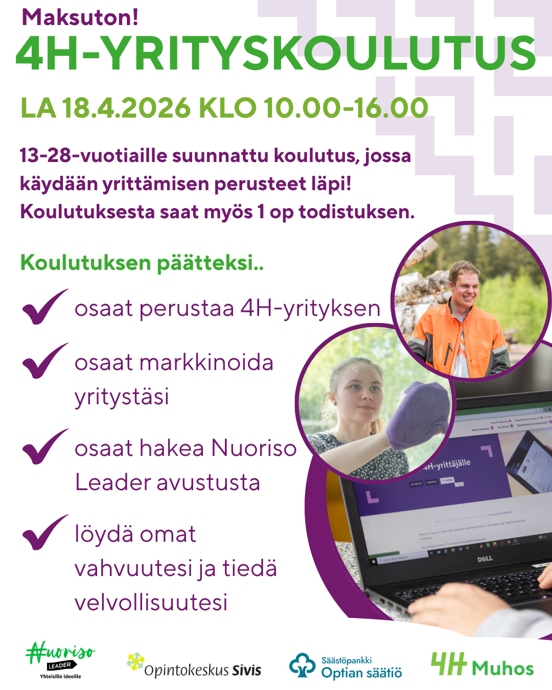 • Voit työllistyä kauttamme tai perustaa oman 4H-yrityksen
