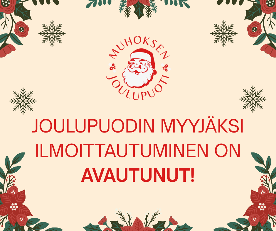 Nyt on aika ilmoittautua Joulupuodin myyjäksi! Paikkoja on tunnetusti rajoitetusti tilan rajallisuuden vuoksi, olethan ripeä etkä jätä ilmoittautumista viime tinkaan!